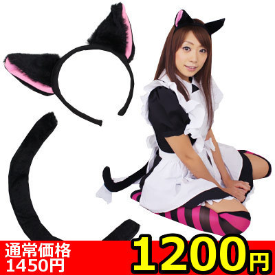 【1200円★数量限定】ねこみみ&ねこしっぽセット(横耳)<お一人様1点限り> ブラック
