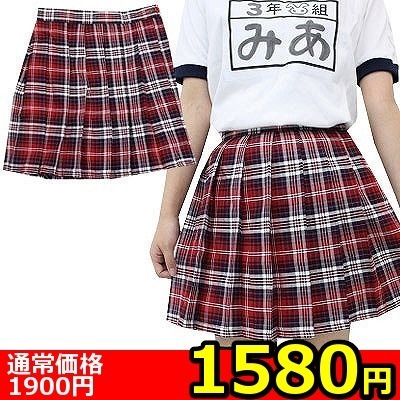 【1580円★数量限定】チェック柄プリーツスカート BIG<お一人様1点限り> レッド・ホワイト