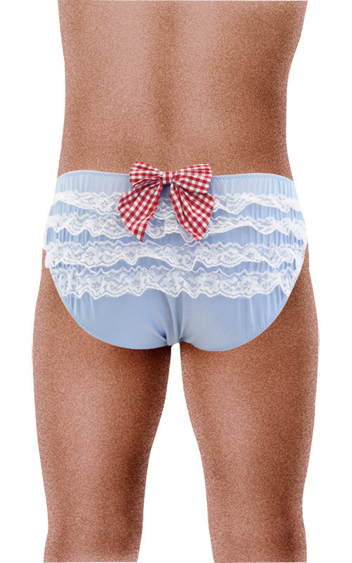 TOP > 男性用ショーツ・ビキニ > ユニセックスギンガムリボンパンティ スカイブルー
