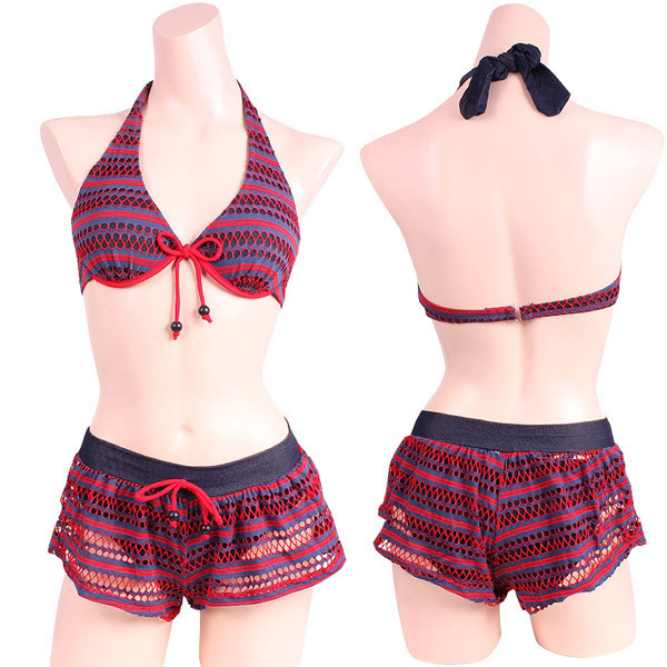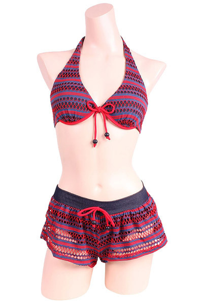 TOP > その他 > デニムコラボメッシュレースビキニ ショートパンツ3点セット レッド