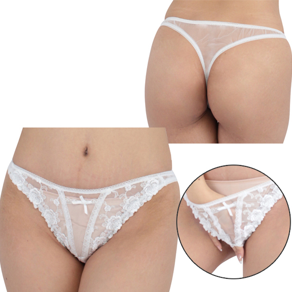 TOP > オープン ブラ・ショーツ(穴あき) > 極薄シースルー&レースオープンTバック ホワイト