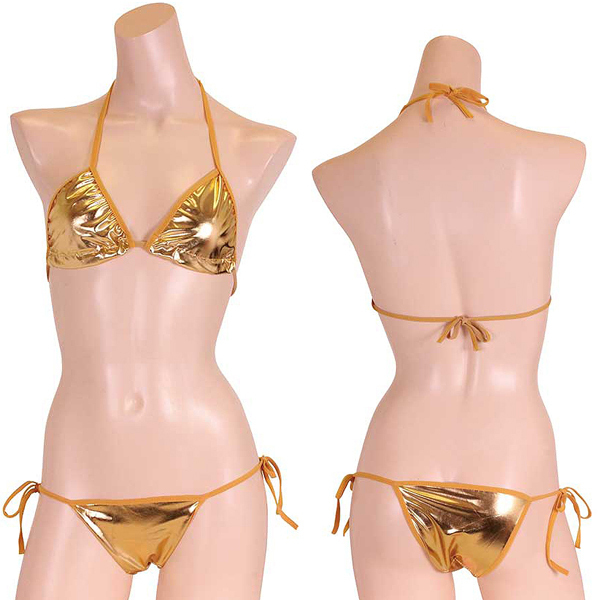 TOP > ブラジャー・ショーツ > パキッとコントラストの効いたキラキラメタリックビキニ ゴールド