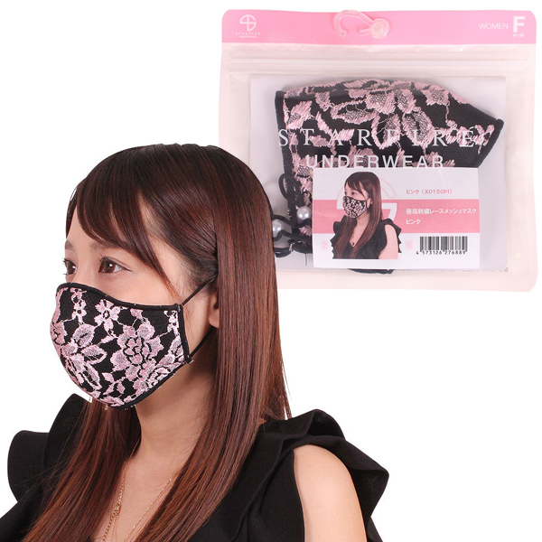 TOP > 小物(猫耳カチューシャ・ニーソ) > 薔薇刺繍レースメッシュマスク ピンク