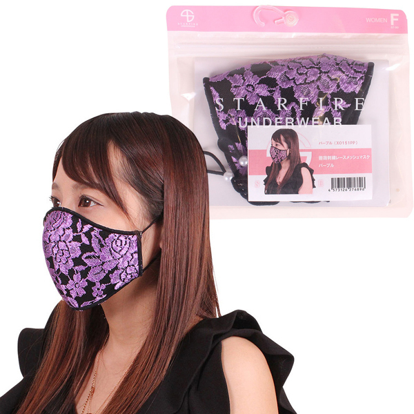 TOP > 小物(猫耳カチューシャ・ニーソ) > 薔薇刺繍レースメッシュマスク パープル