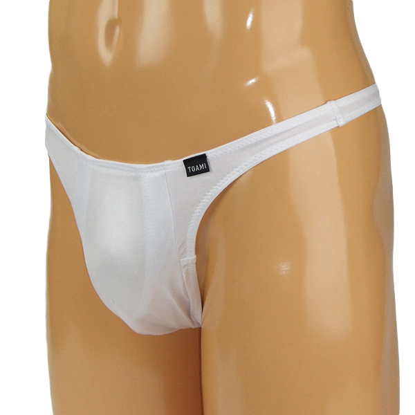 TOP > 男性用ショーツ・ビキニ > メンズ 光沢ストレッチ生地玉袋付きTバック Mホワイト
