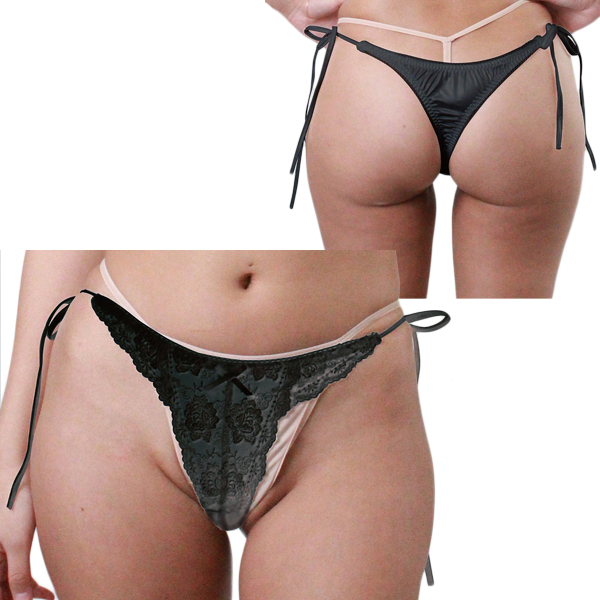 TOP > ショーツ・パンティ > 光沢生地にレース付き脇ヒモTバック Lサイズ ブラック