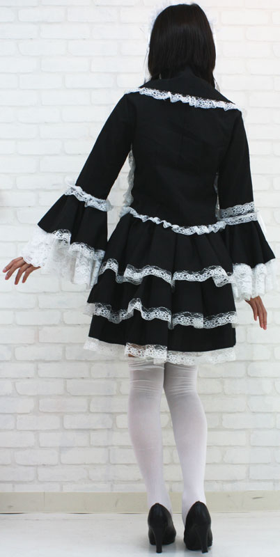 仕様: Mサイズ:B76〜82cm・W64〜100ccm 丈:上着48cm(袖62cm・肩幅37cm)・スカート47cm セット内容:ジャケット(前ボタン留め、姫袖)・別衿・ヘッドドレス(総レース仕様、バラのコサージュ付き)・スカート(ウェストゴム入り)