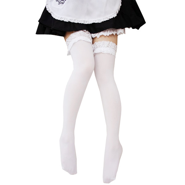 メイド服やゴスロリ衣装と相性バッチリ!上品なレース付き白ニーハイソックス。キャットガーターのような白レースで、オシャレ度急上昇!コスプレ衣装のコーディネートに、何か物足りない…と思った時はコレ!かなり使えます!※こちらの商品は在庫の状況によりお届けまでに4日〜7日程度かかる場合がございます。