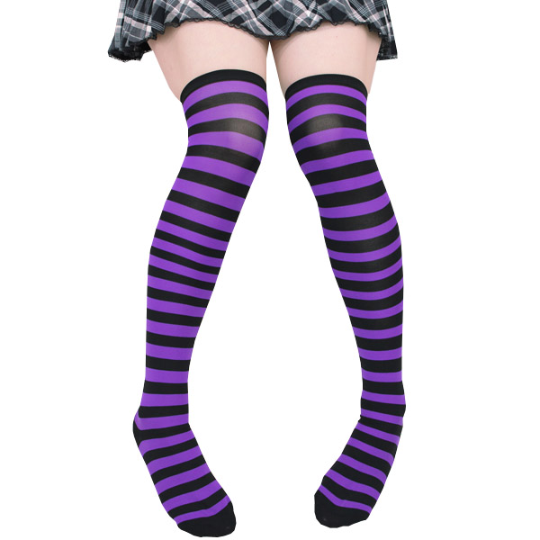 TOP > 小物(猫耳カチューシャ・ニーソ) > ニーハイボーダー パープル・ブラック 幅1cm
