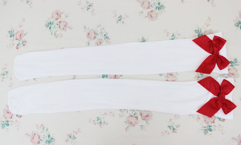 TOP > 小物(猫耳カチューシャ・ニーソ) > リボン付きニーハイ 白×赤リボン