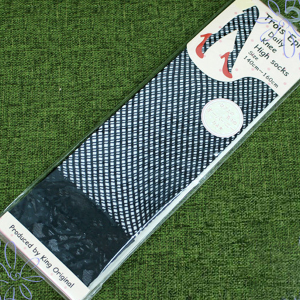TOP > 小物(猫耳カチューシャ・ニーソ) > レース付き細メッシュニーハイソックス 黒 140〜160cm