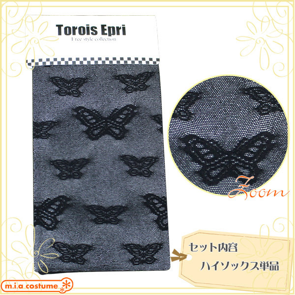 TOP > 小物(猫耳カチューシャ・ニーソ) > 蝶柄ハイソックス 黒 フリーサイズ