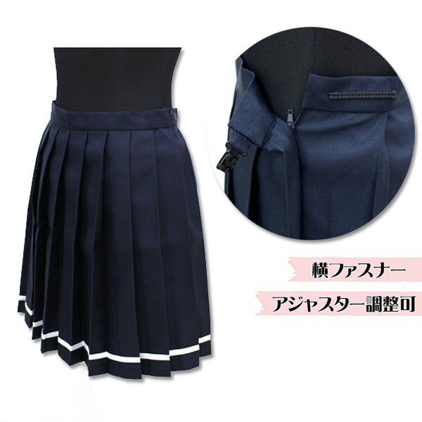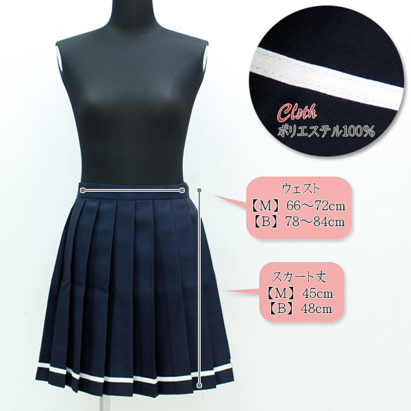 TOP > 小物(猫耳カチューシャ・ニーソ) > 無地プリーツスカート単品 紺×白ライン M
