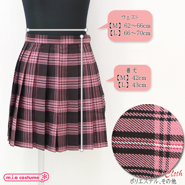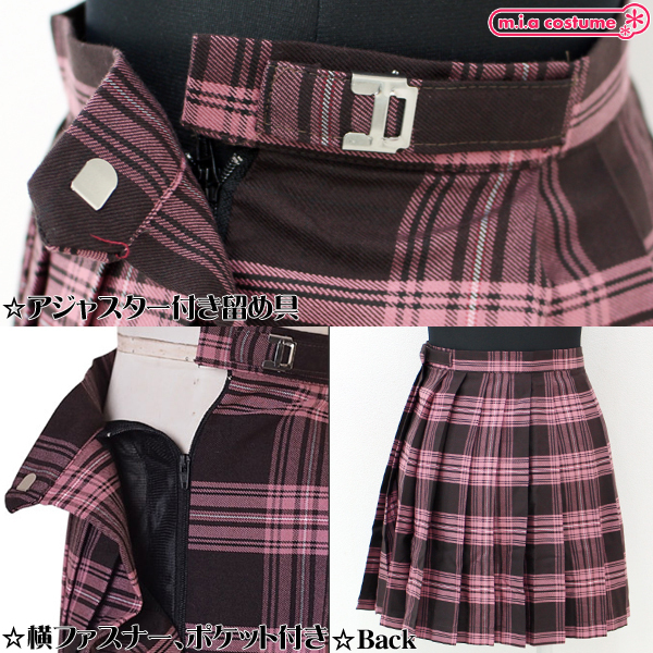 TOP > 小物(猫耳カチューシャ・ニーソ) > ポケット付きのチェック柄プリーツスカート単品 ピンク×ブラウン Lサイズ