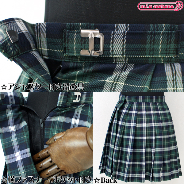 TOP > 小物(猫耳カチューシャ・ニーソ) > ポケット付きのチェック柄プリーツスカート単品 緑×白 Mサイズ