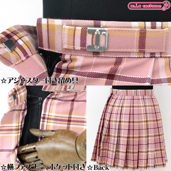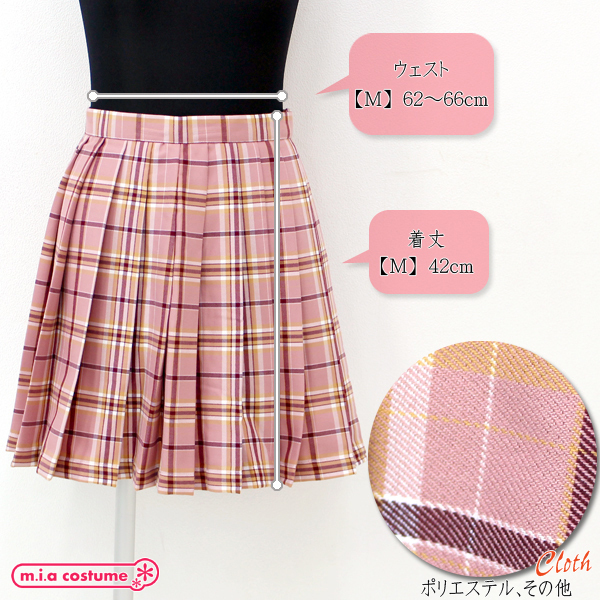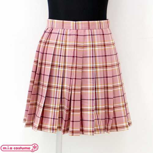 TOP > 小物(猫耳カチューシャ・ニーソ) > ポケット付きのチェック柄プリーツスカート単品 ピンク×キャメル Mサイズ