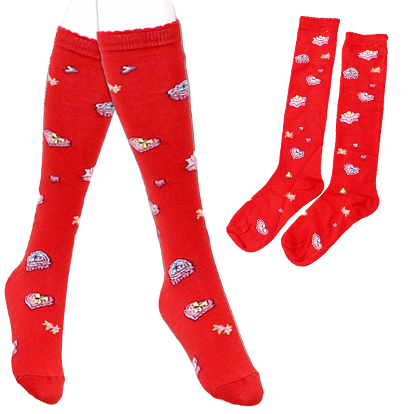 TOP > 小物(猫耳カチューシャ・ニーソ) > クッキー柄ロリータハイソックス単品 赤