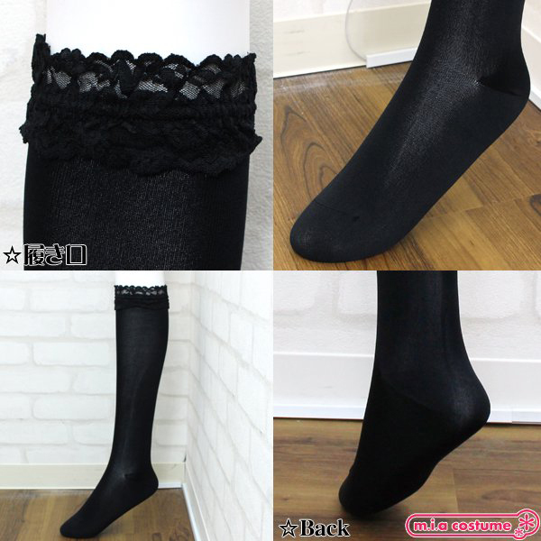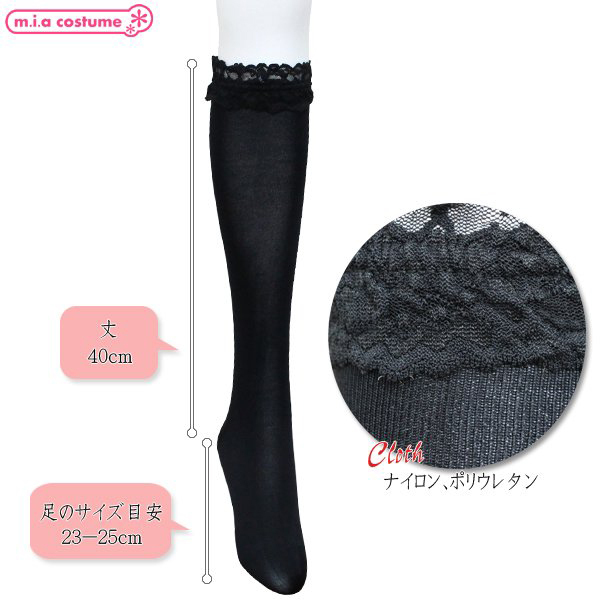 TOP > 小物(猫耳カチューシャ・ニーソ) > ソフトナイロンレース付ハイソックス 黒 無地 40cm丈 23〜25cm