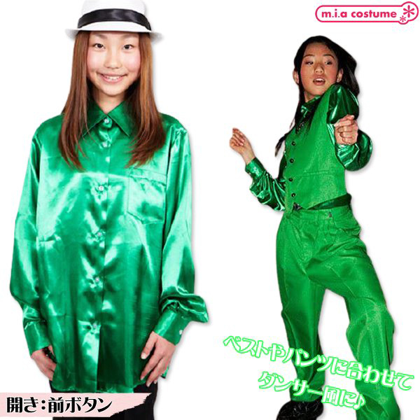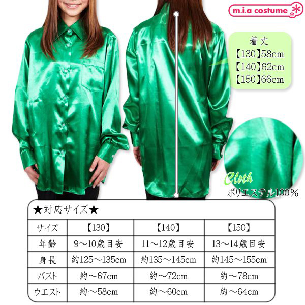 TOP > 小物(猫耳カチューシャ・ニーソ) > サテンシャツ (グリーン 130サイズ)