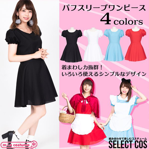 TOP > 小物(猫耳カチューシャ・ニーソ) > セレクトコス パフスリーブワンピース ブラック