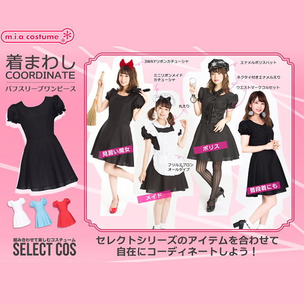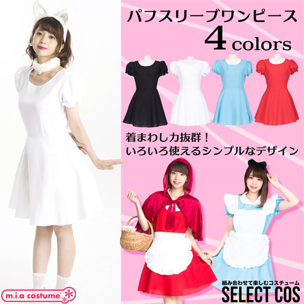 TOP > 小物(猫耳カチューシャ・ニーソ) > セレクトコス パフスリーブワンピース ホワイト