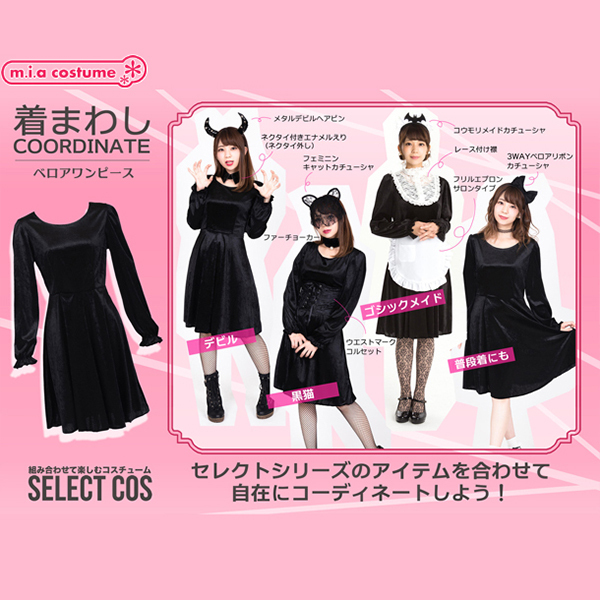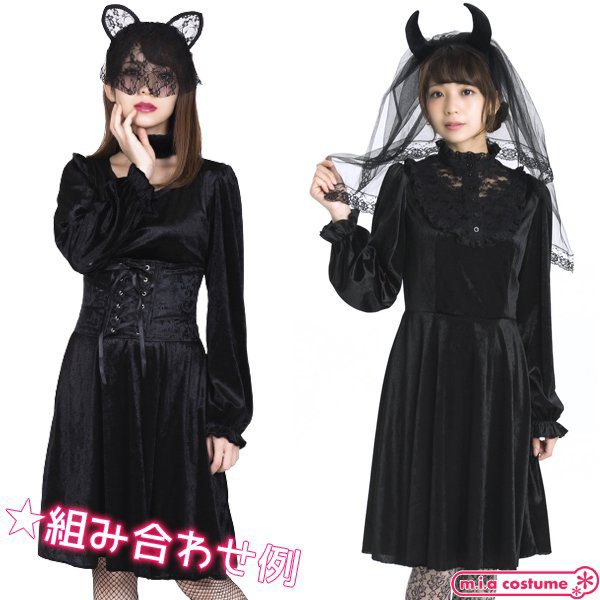 TOP > 小物(猫耳カチューシャ・ニーソ) > セレクトコス ベロアワンピース ブラック
