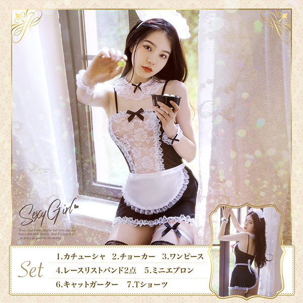 TOP > その他 > コスプレ レース×リボン シアーメイド 7点セット ブラック×ホワイト